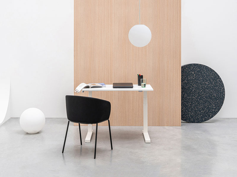 Le panneau de commande simple d’utilisation permet un ajustement rapide du plan de travail, permettant la transition de la position assise à la position debout