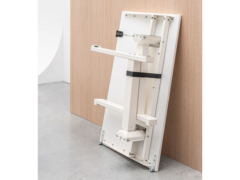 L’avantage de ce bureau est son piétement pliable, permettant ainsi de le ranger une fois le télétravail terminé
